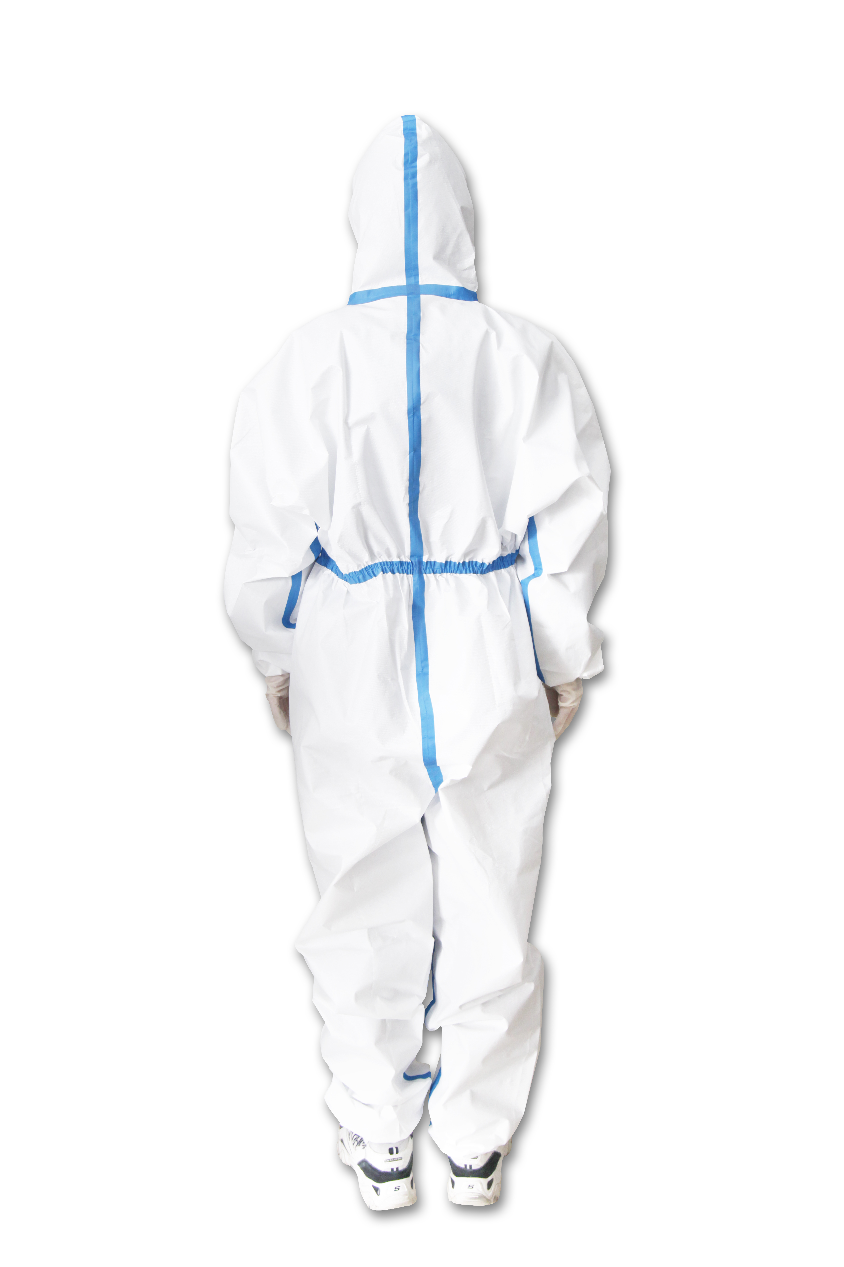 醫用一次性防護服由連帽上衣、褲子組成、為連身式結構。無菌和非無菌兩種包裝,產品符合GB19082-2009《醫用一次性防護服要求》。