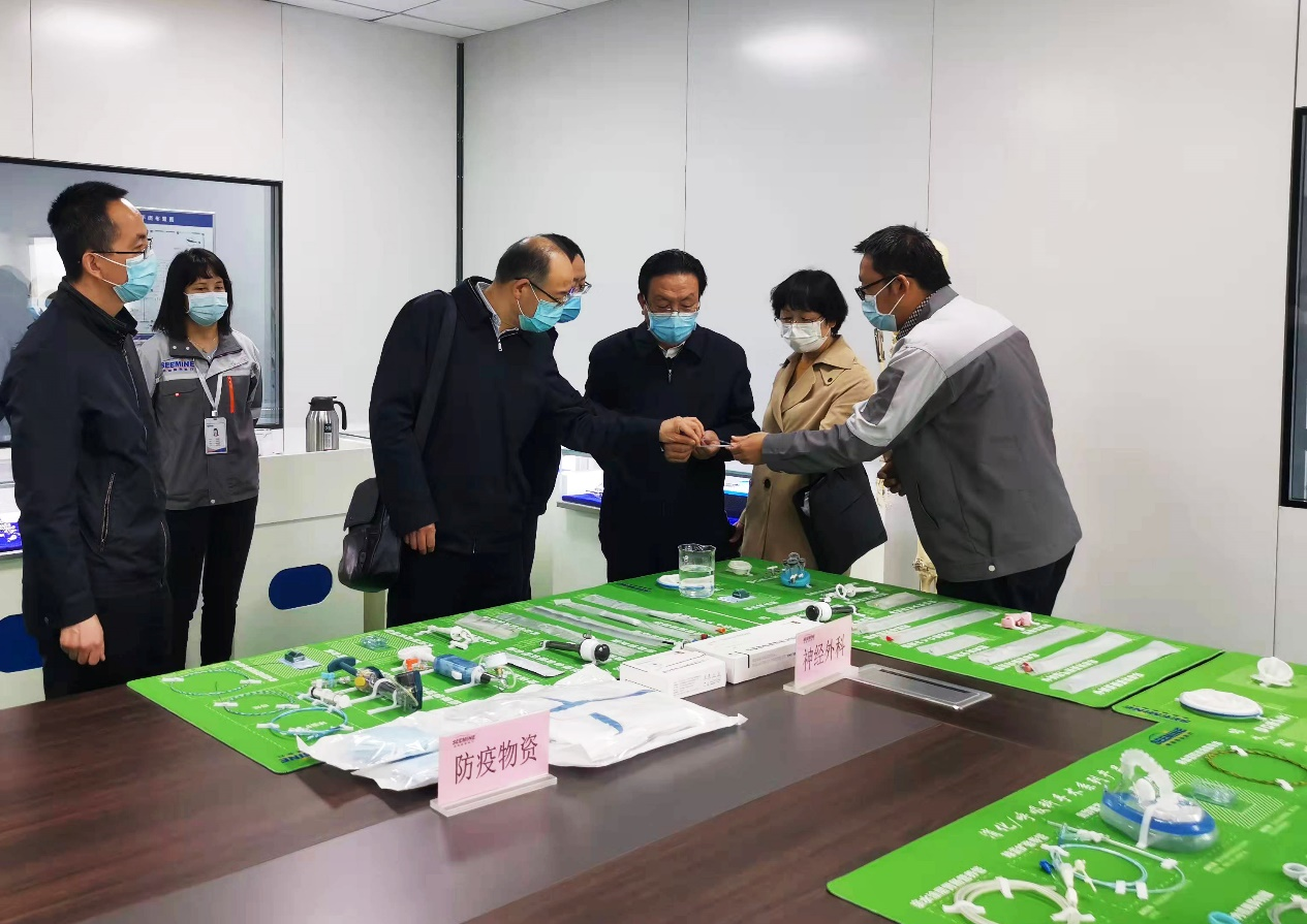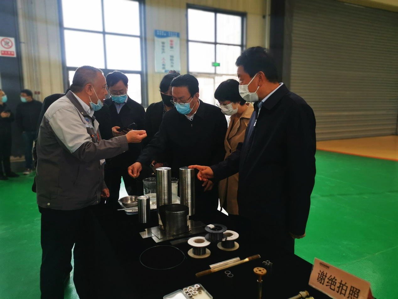 在調研過程中,領導們參觀了蘭州西脈醫療原材料產業基地,對原材料形狀記憶合金內固定植入器械、全碳雙葉型人工機械心臟瓣膜、新型功能性涂層導絲、超潤滑親水涂層導尿管、口罩等產品的研發和生產環境進行了深入細致的考察。同時對公司人才隊伍及培訓機制、建設方式、建設取得的成績以及人才隊伍建設中面臨的問題等展開了全面的探討。