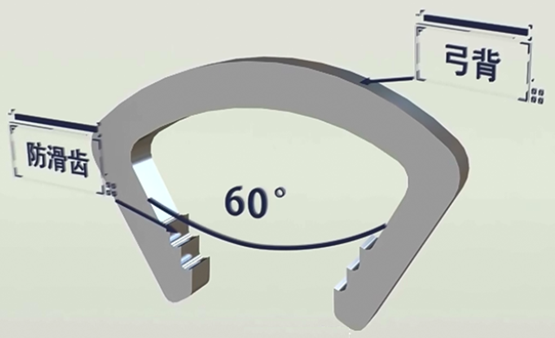 3. 產(chǎn)品弓背與釘腳呈60-80°角,植入后對(duì)血運(yùn)重建干涉小,血運(yùn)重建的速度和完善程度較好,有利于患者術(shù)后早期活動(dòng),縮短骨折愈合病程。