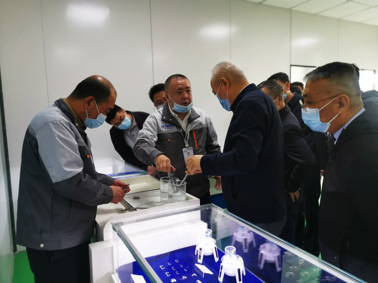 According to the research work arrangement of the "Strong Provincial Capital Action" in Gansu Province, on the afternoon of April 27, 2022, organized by the Lanzhou Development and Reform Commission, accompanied by Luo Zemin, Vice Chairman of the Municipal Committee of the Chinese People's Political Consultative Conference and Secretary of the Gansu (Lanzhou) International Land Port Party Working Committee, Gao Jinbao, Director of the Economic Committee of the Municipal Committee of the Chinese People's Political Consultative Conference, Niu Zhengchao, Lin Ke, Kang Hong, Xiao Zhigang, and relevant personnel, Visited Ximai New Materials Industrial Park for research, accompanied by leaders such as Ma Taolin, General Manager of Lanzhou Ximai Medical Company, Su Jinxia, Executive Vice President, and Tang Yan, Deputy General Manager.