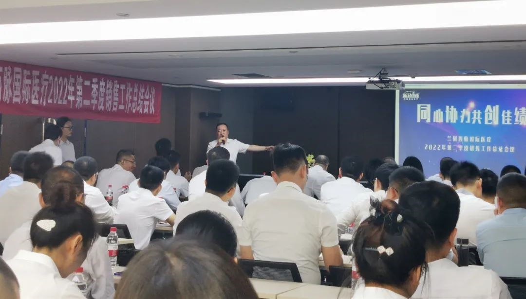 蘭州西脈國際醫療總經理馬總對二季度銷售會議做總結及點評,根據各部目前情況,對后續工作提出要求及指示,并對三四季度的工作方向做出指引。